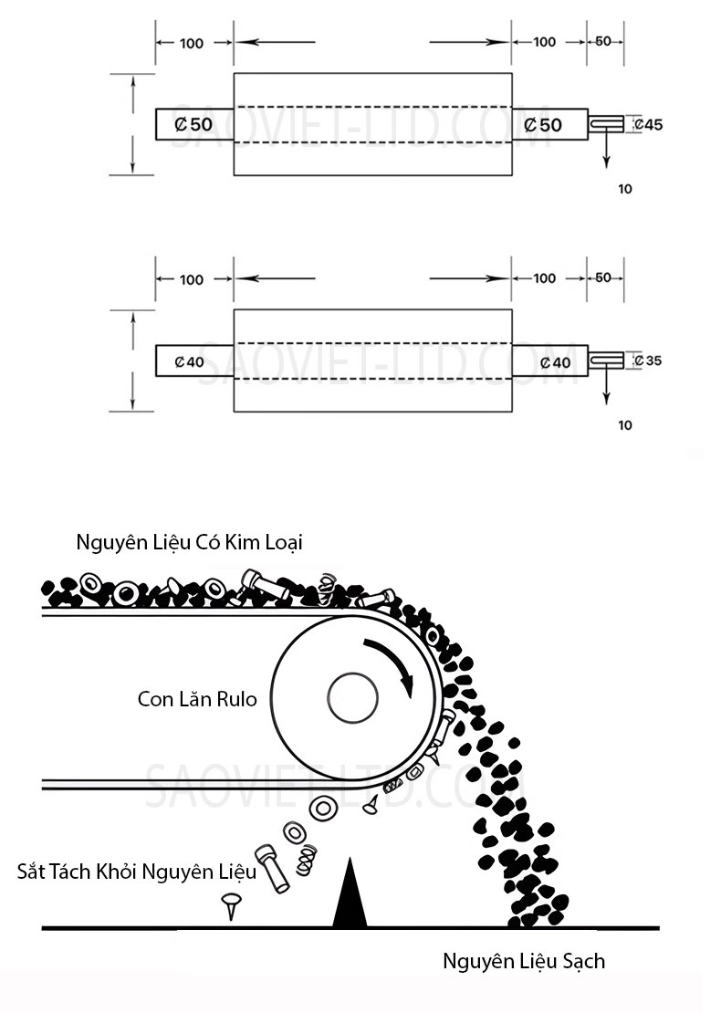 SƠ ĐỒ NGUYÊN LÝ HOẠT ĐỘNG CỦA RULO CON LĂN TỪ TÍNH TÁCH SẮT