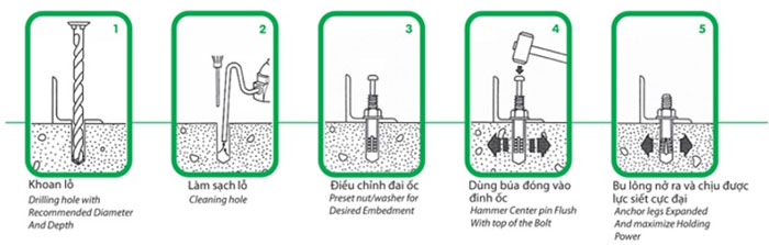 >> Bước 5: Kiểm tra và điều chỉnh lại bu lông nở đinh cho theo ý muốn.