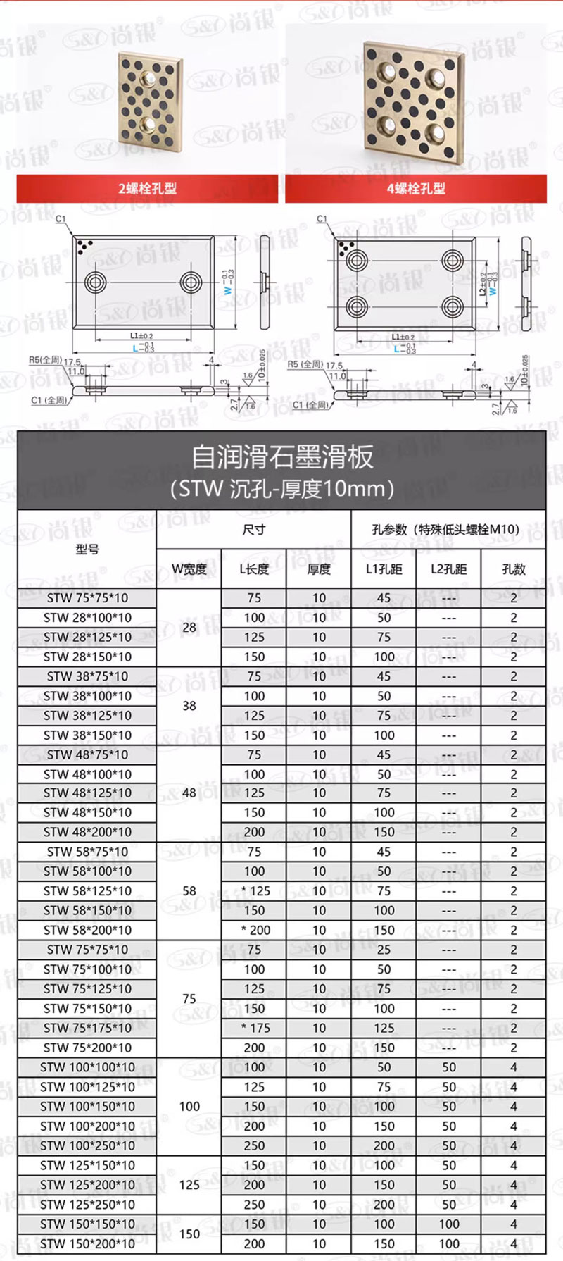 Bảng Thông Số Kỹ Thuật Tấm Trượt Tự Động Bôi Trơn STW28/38/48/58