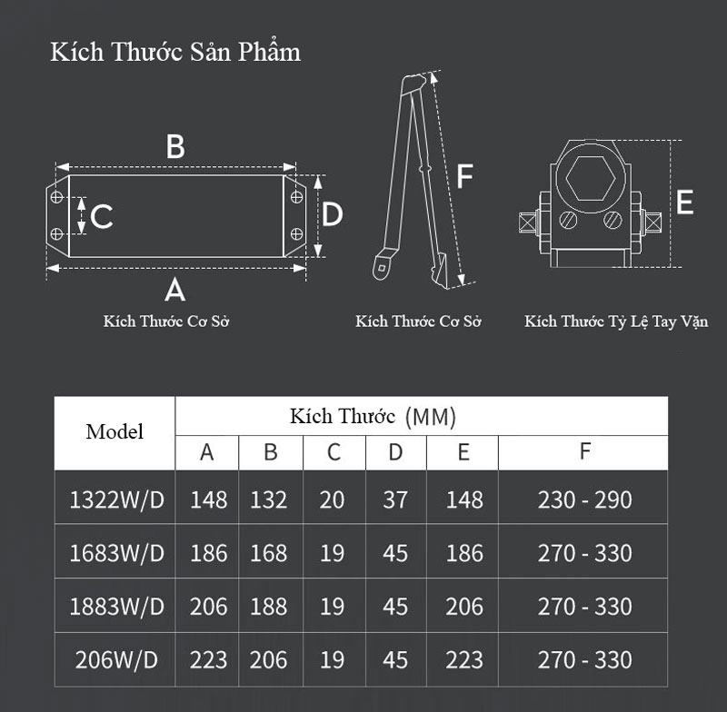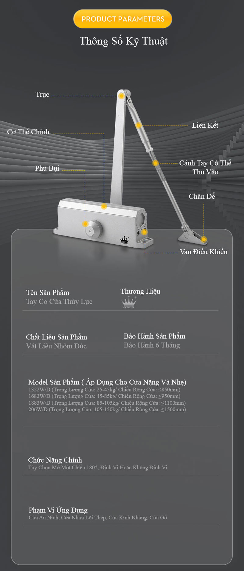 Bảng Thông Số Kỹ Thuật Tay Co Cửa Thủy Lực