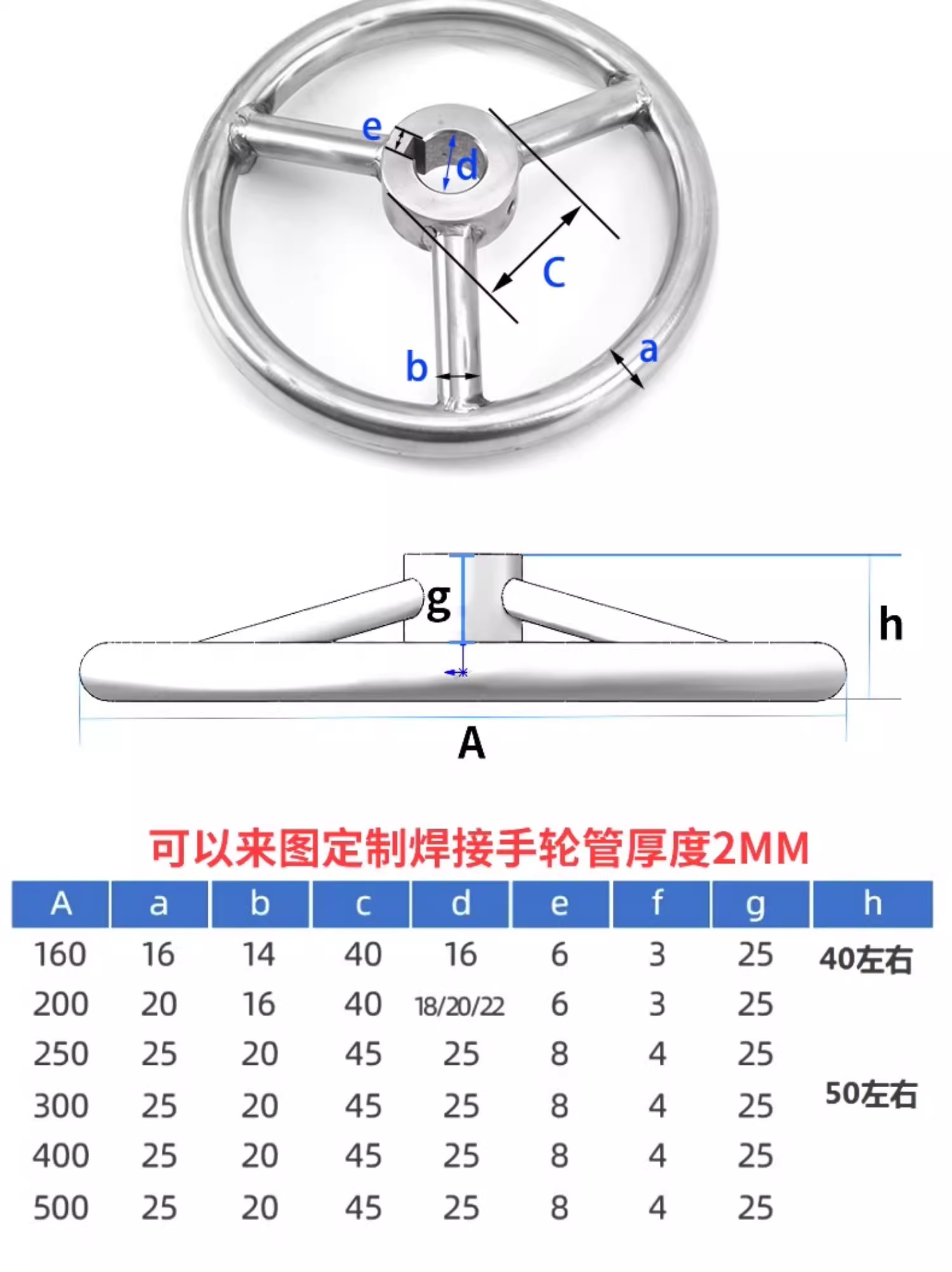 Vật liệu Inox 304, Tay quay kiểu hàn