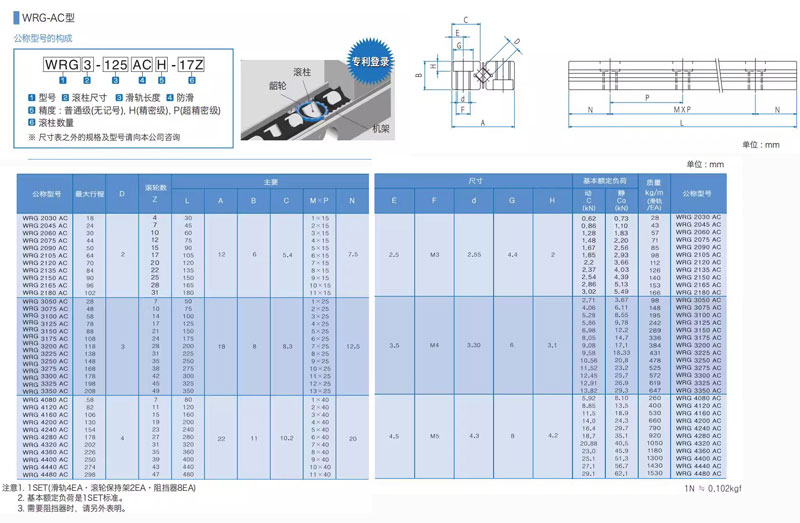 Bảng Thông Số Kỹ Thuật Thanh Dẫn Con Lăn Chữ Thập WRG-AC
