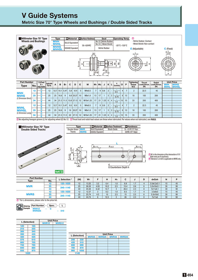 Bảng Thông Số Kỹ Thuật Thanh Dẫn Hướng V Bánh Xe Và Ống Lót Kim Loại 70*