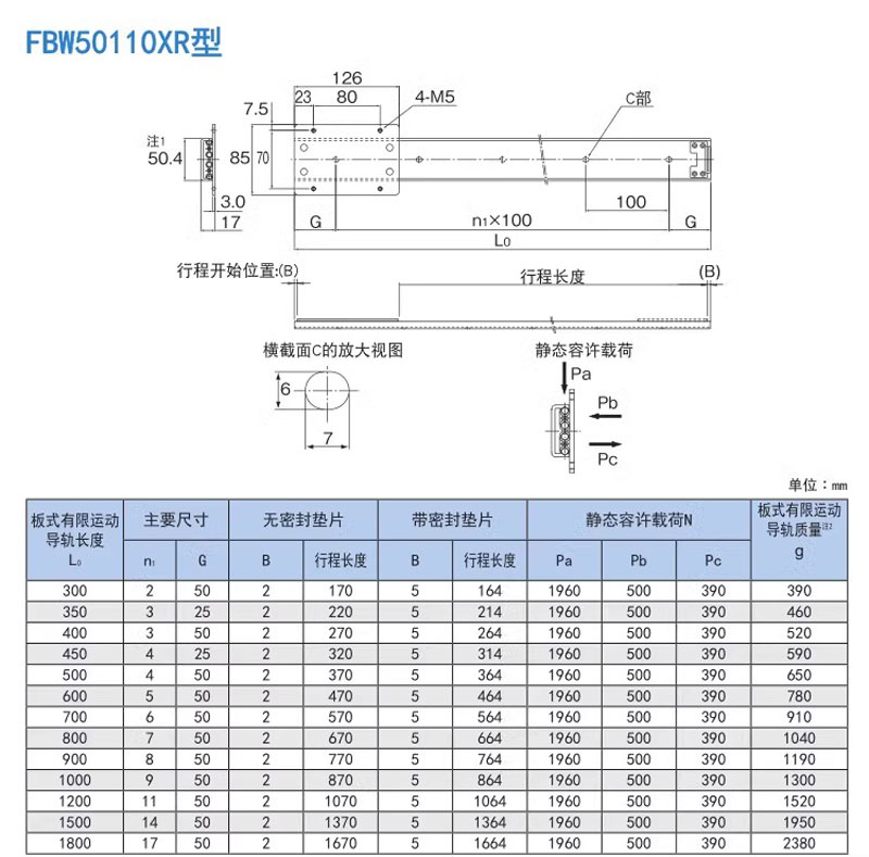 Bảng Thông Số Kỹ Thuật Thanh ray, con trượt FBW50110XR