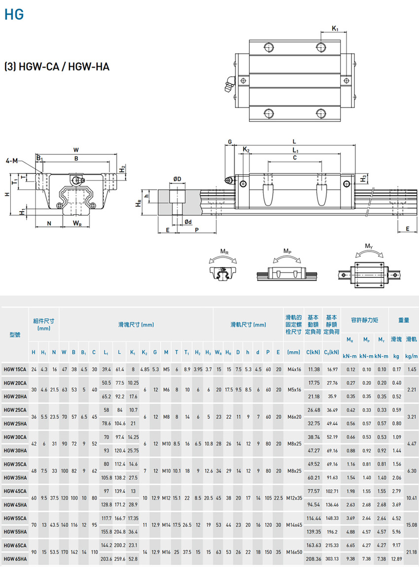 Con trượt có cánh: HGW20CC, HGW25CC, HGW30CC