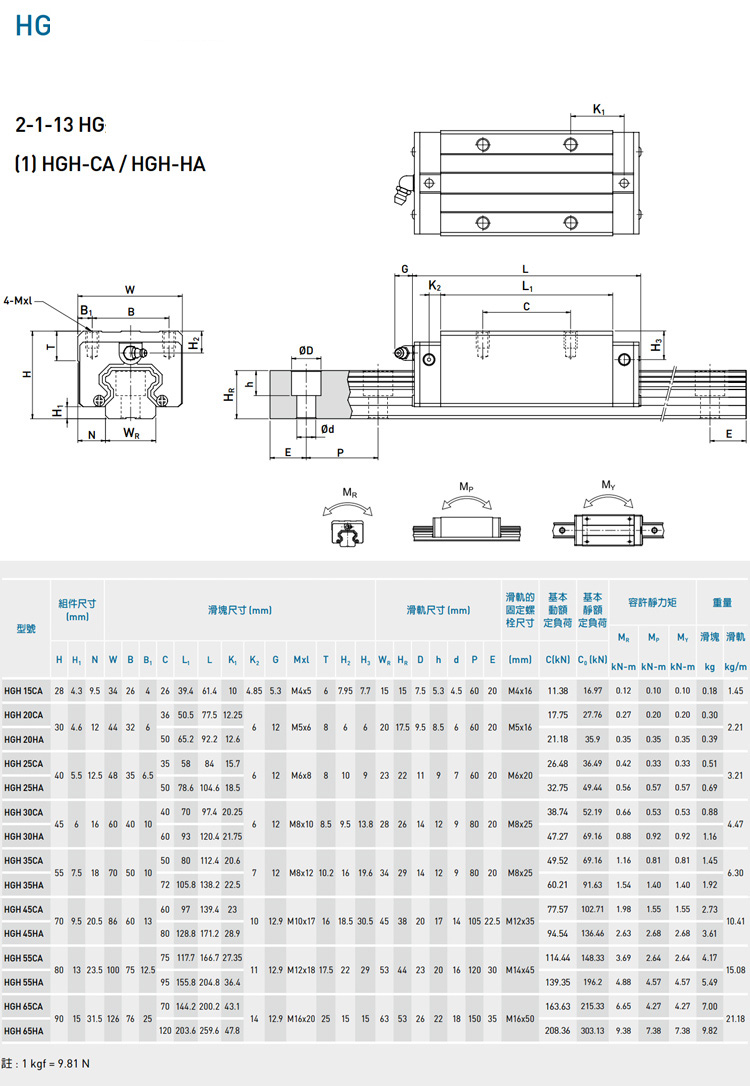 Con trượt vuông: HGH20CA, HGH25CA, HGH30CA