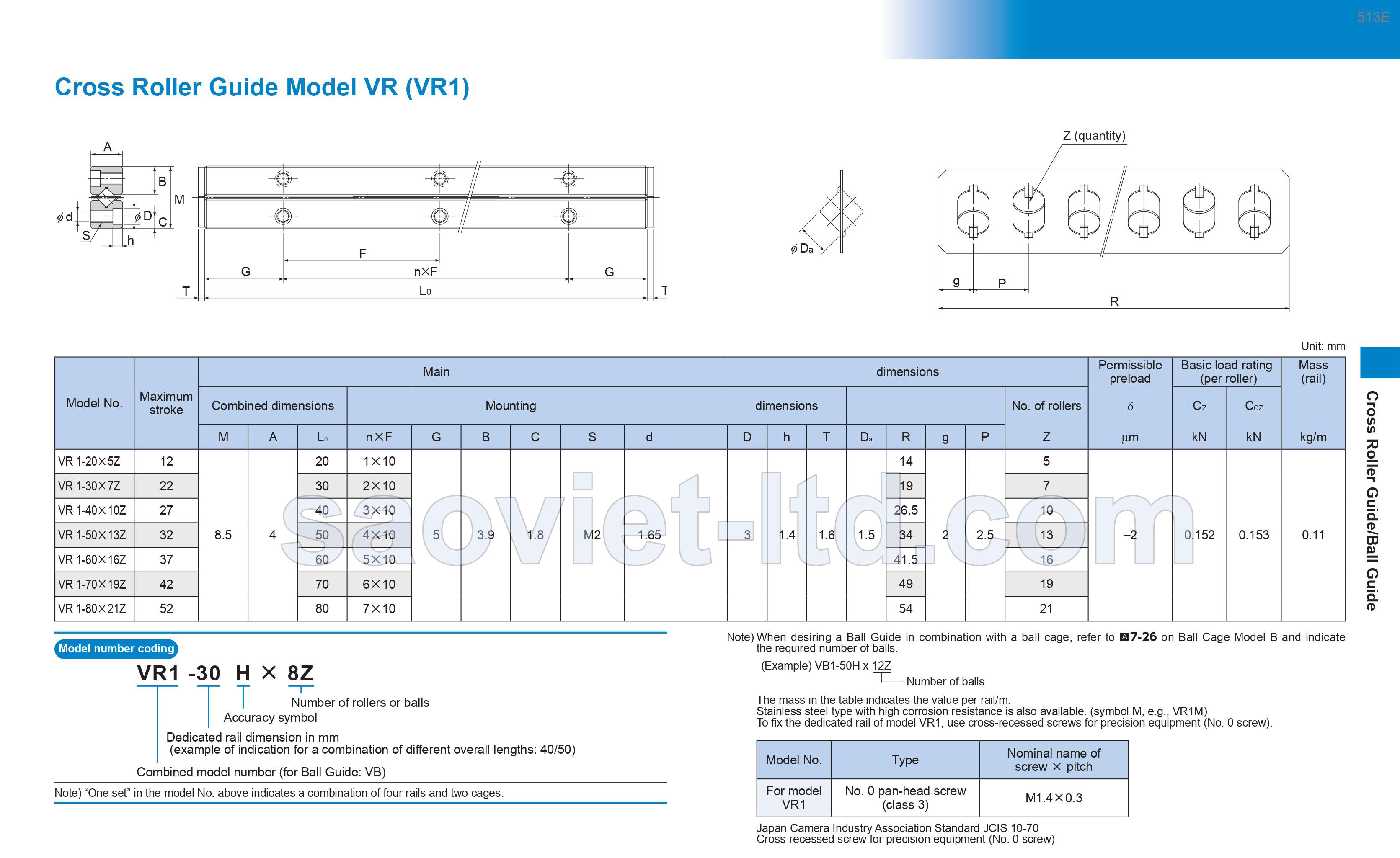 Thông số kỹ thuật Thanh Trượt Dẫn Hướng Tuyến Tính THK VR1