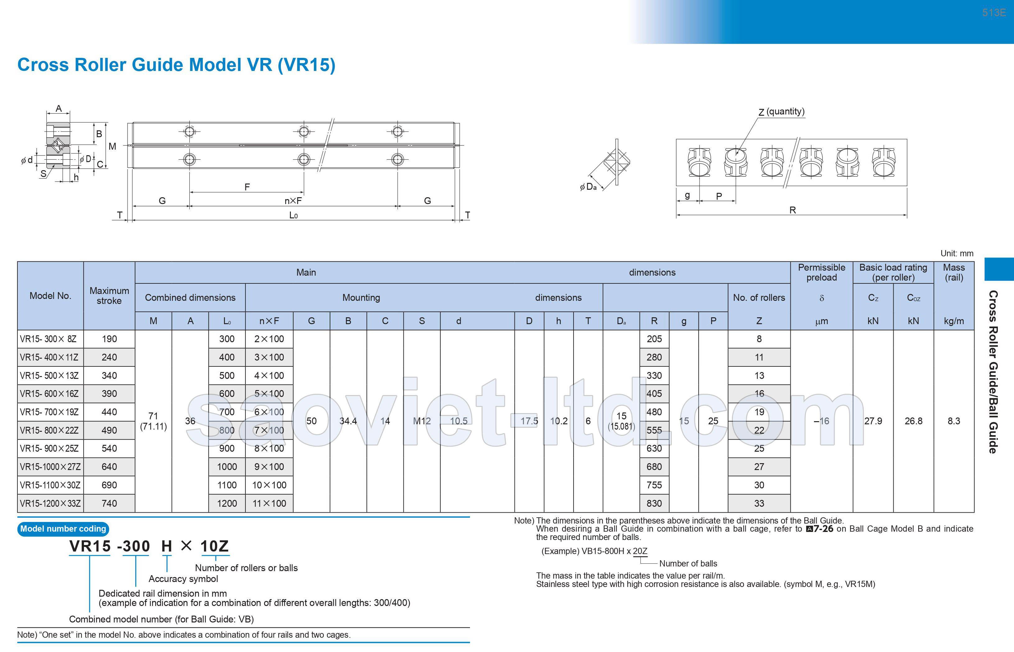 Thông số kỹ thuật Thanh Trượt Dẫn Hướng Tuyến Tính THK VR15