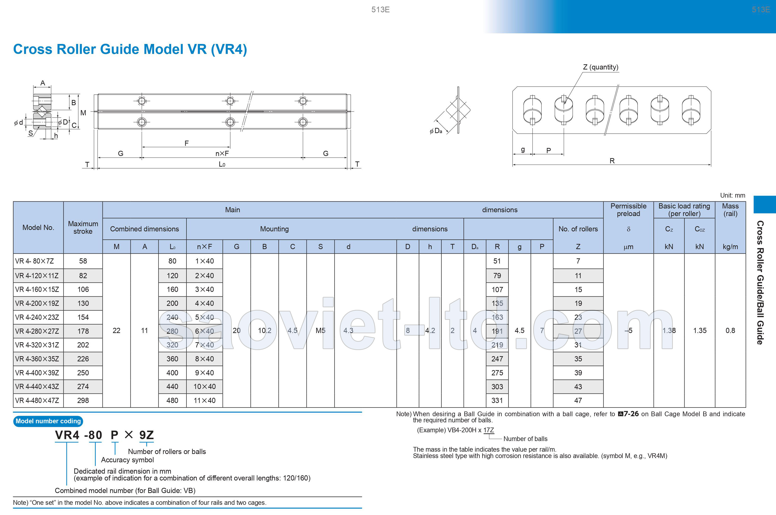 Thông số kỹ thuật Thanh Trượt Dẫn Hướng Tuyến Tính THK VR4
