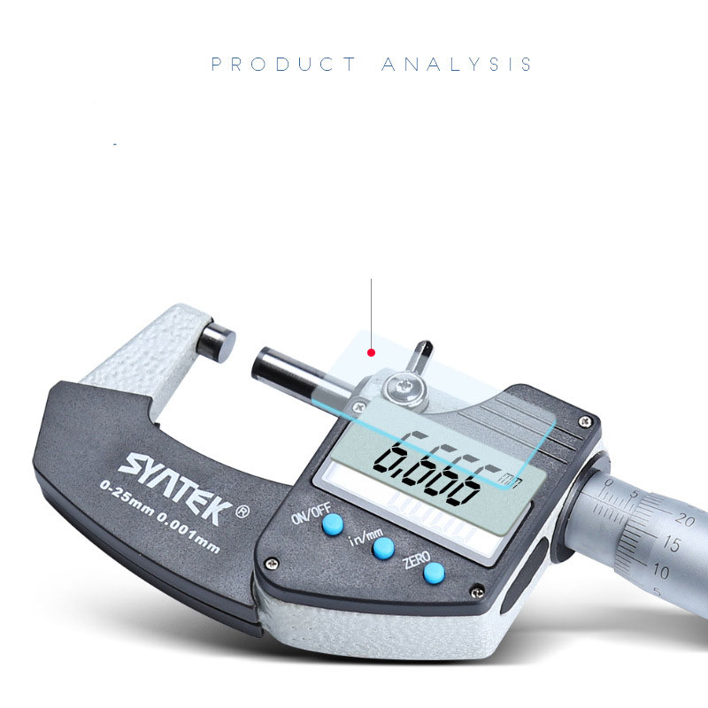Panme đo ngoài điện tử với rất nhiều các loại khác nhau. Mỗi loại đều sở hữu những tính năng ưu việt và panme đo điện tử Syntek - Q3Z03F25 cũng không ngoại lệ. Thước đo cơ khí có khả năng đo ở phạm vi 0-25mm, độ chia: 0,001mm.