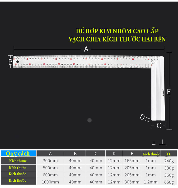 Thước Ke góc vuông 90 độ Hợp Kim Nhôm Cao Cấp
