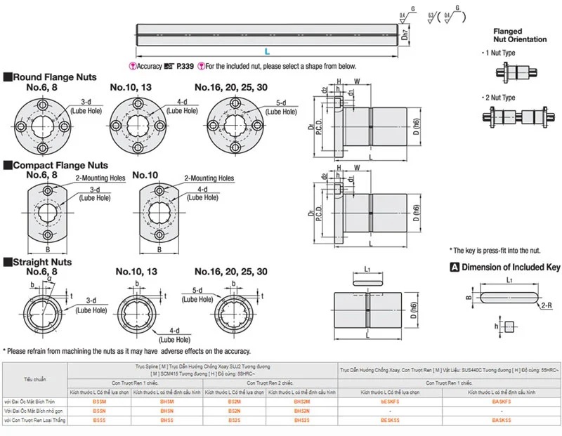 Bảng Thông Số Kỹ Thuật Trục Dẫn Hướng Chống Xoay BASKFS