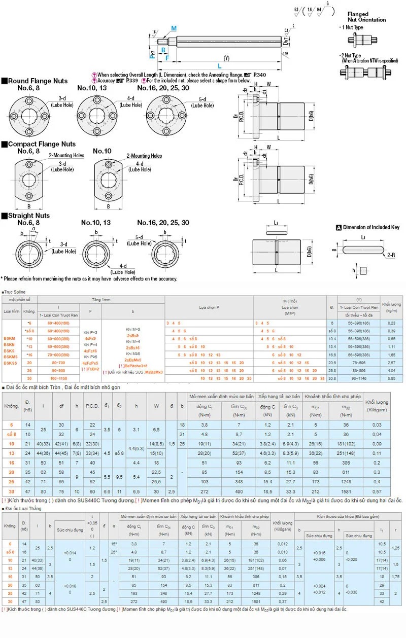 Bảng Thông Số Kỹ Thuật Trục Dẫn Hướng Chống Xoay Có Đầu Then Và Đầu Vít BSKM6