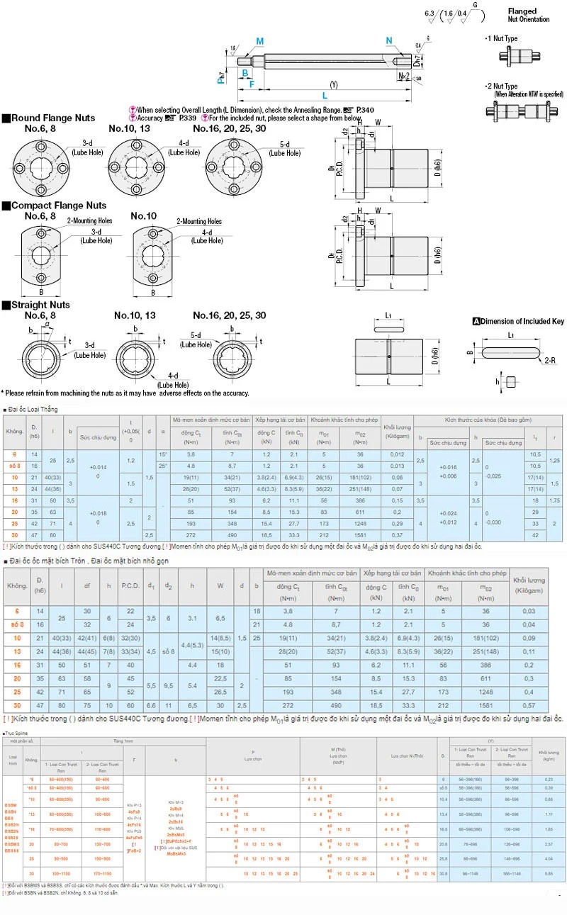 Bảng Thông Số Kỹ Thuật Trục Dẫn Hướng Chống Xoay Có Đầu Vít BSB2M6