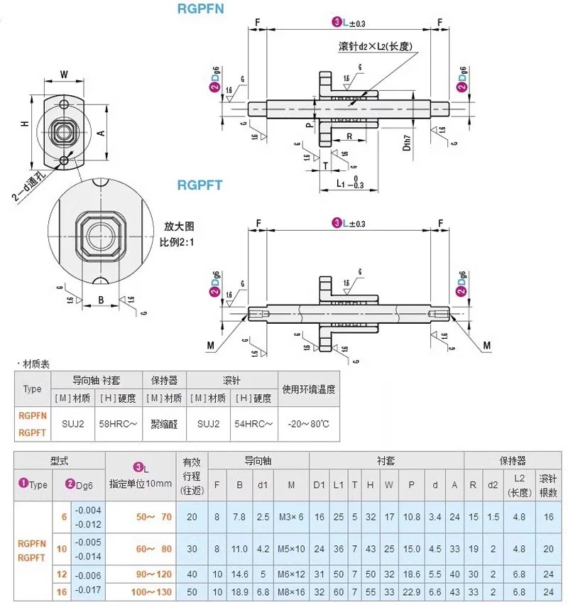 Bảng Thông Số Kỹ Thuật Trục Dẫn Hướng Chống Xoay Có Độ Cứng Cao RGPFN6