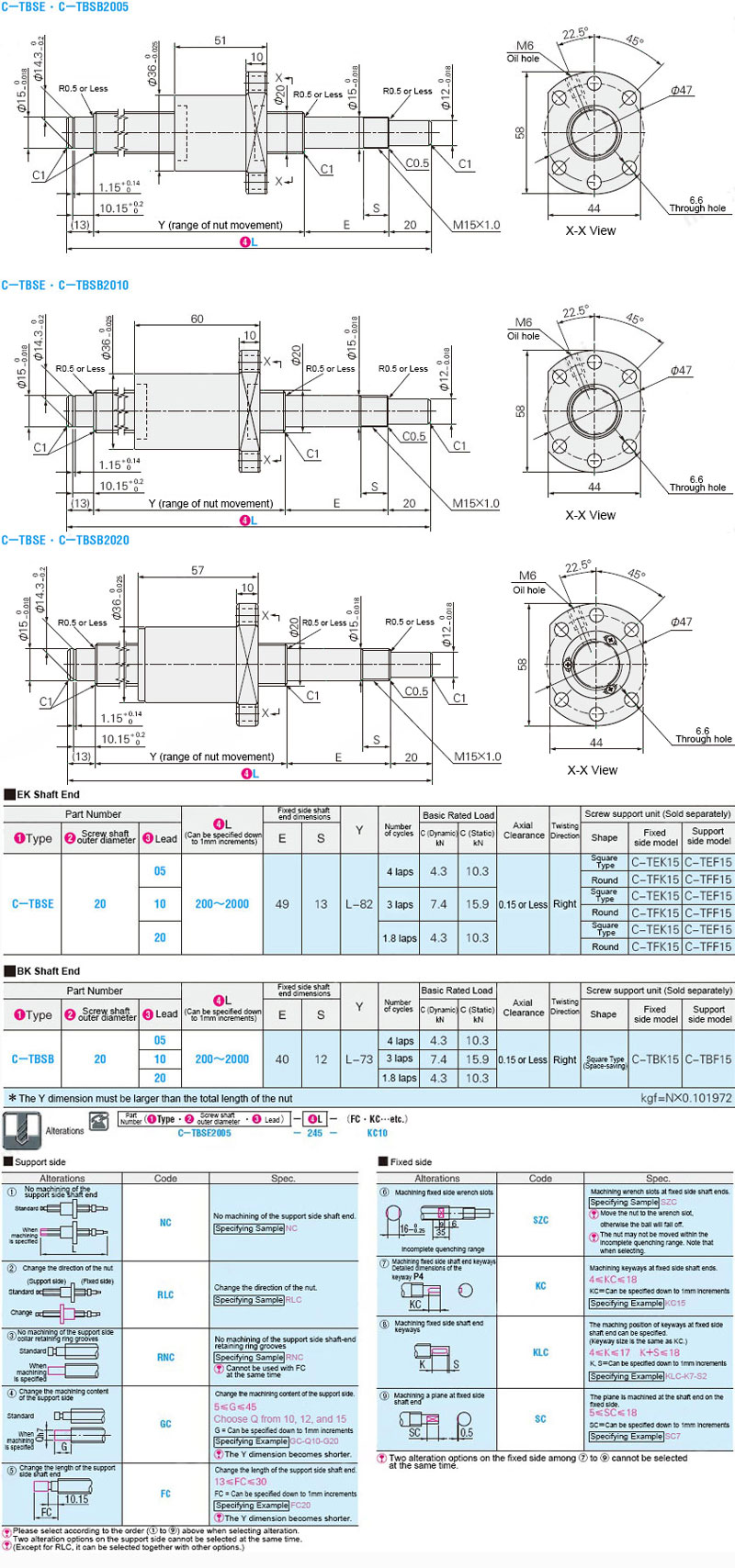 Bảng Thông Số Kỹ Thuật Trục Vít Bi C-TBSE/TBSB 2005 2010 2020
