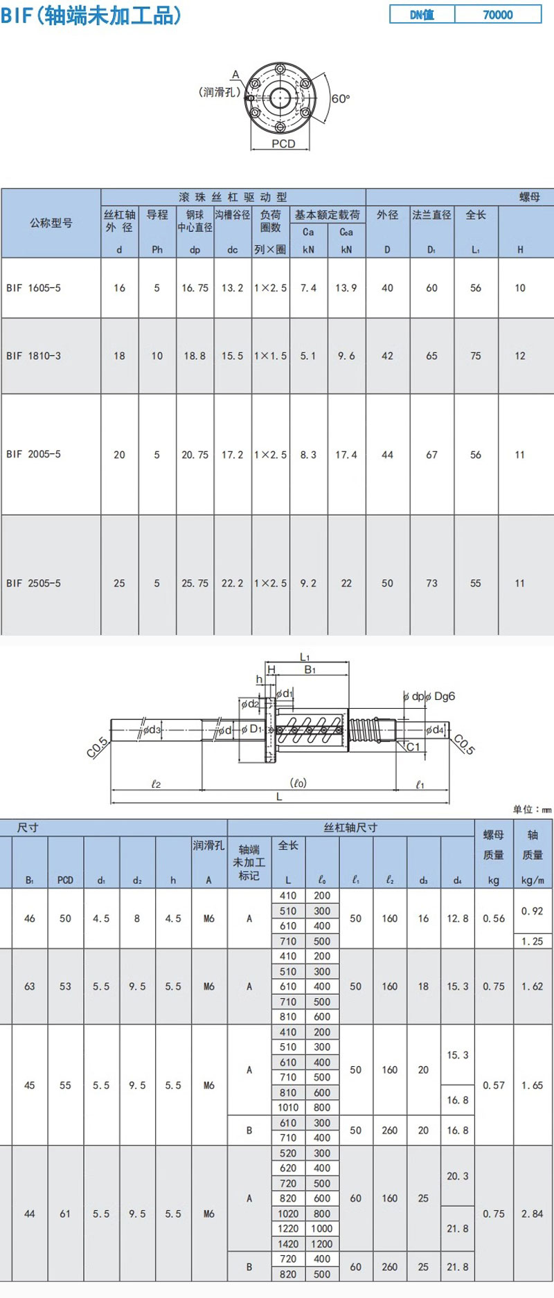 Bảng Thông Số Kỹ Thuật Trục Vít Bi Chính Xác BIF