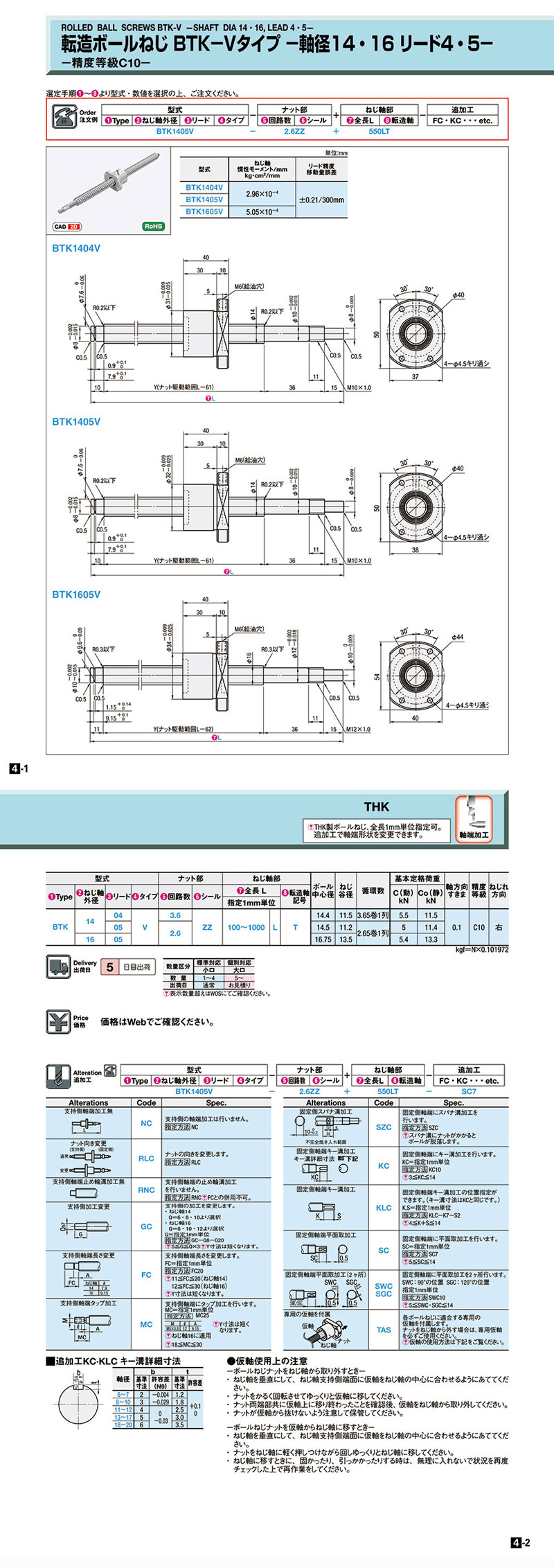 Bảng Thông Số Kỹ Thuật Trục Vít Bi Lăn BTK-V