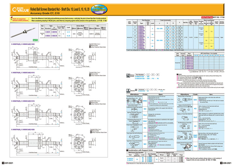 Các ký hiệu như C-BSSCA/CAK và C-BSSTA/TAK thường dùng để chỉ sự khác biệt về loại đai ốc, cơ chế tải trước và loại trục vít: