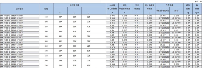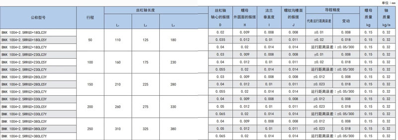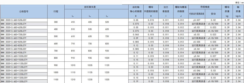 Bảng Thông Số Kỹ Thuật Trục Vít Có Bu Lông Đầu Bịt BNK1404 1408 1510 1520 1616 2010 2020 2520