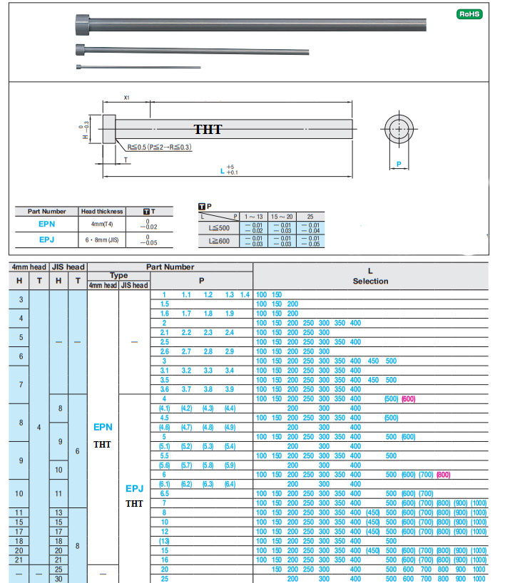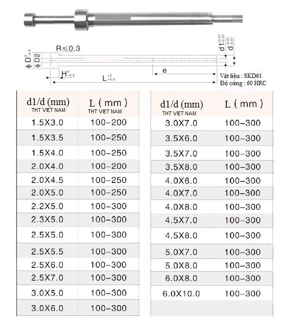 Ty đẩy được sử dụng trong khuôn mẫu ép nhựa, có chức năng đẩy các sản phẩm nhựa sau khi được cán ép thành hình trong khuôn ép nhựa ra ngoài .Tùy theo khuôn sẽ có những dòng chất liệu làm ty đẩy khác nhau như: SKD61 hoặc SKD61-H13.