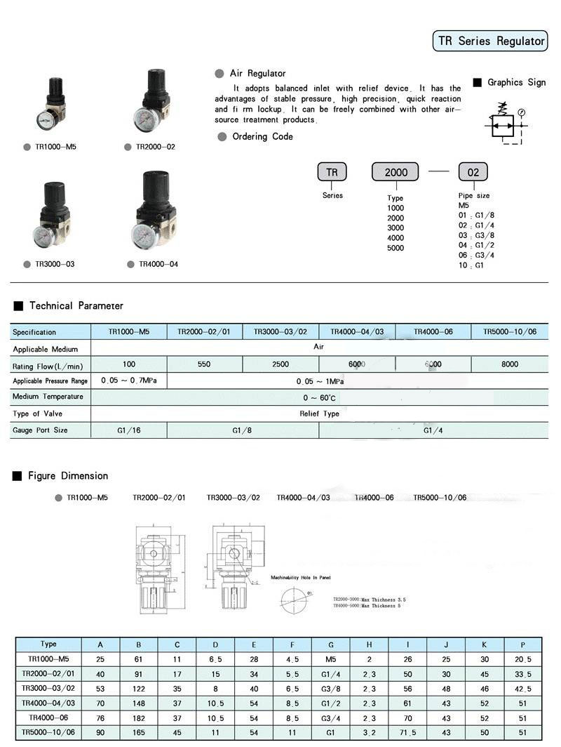 Thông số kĩ thuật và kích thước của van điều chỉnh áp suất khí nén STNC TR5000-10