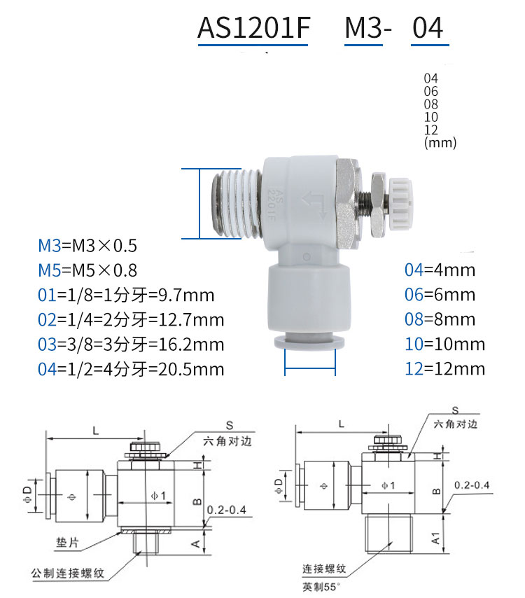 Model: Van Điều Chỉnh Lưu Lượng SMC AS1201F, AS2201F, M3/M5/01/02-03/04/06
