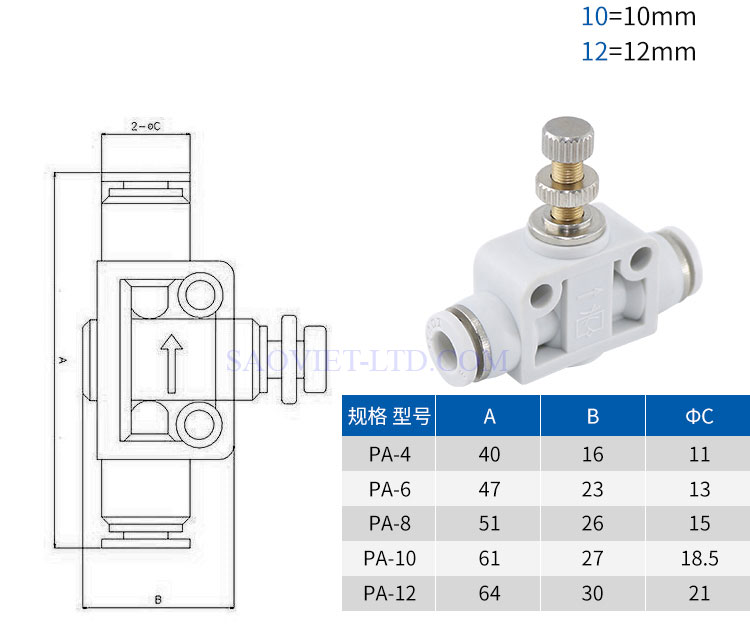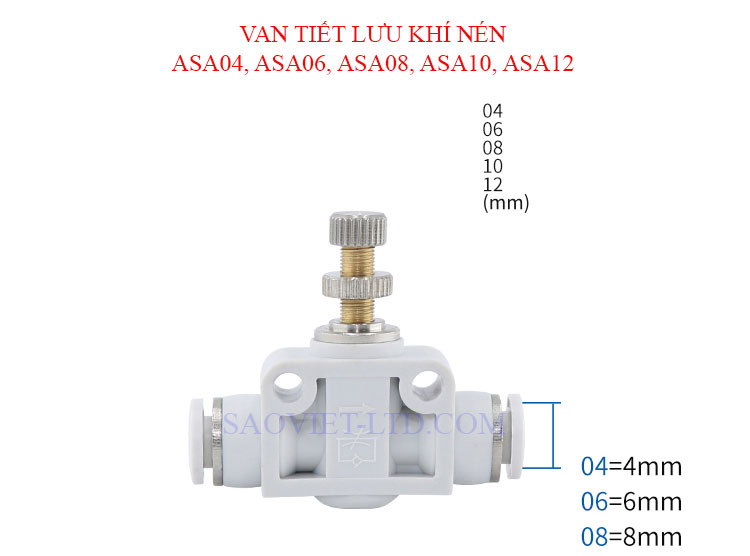 Model: Van tiết lưu SMC khí nén ASA04, ASA06, ASA08, ASA10, ASA12