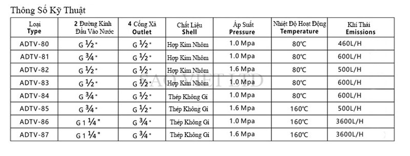 Mô tả chi tiết Van Xả Nước Tự Động Máy Nén Khí ADTV-80, ADTV-81