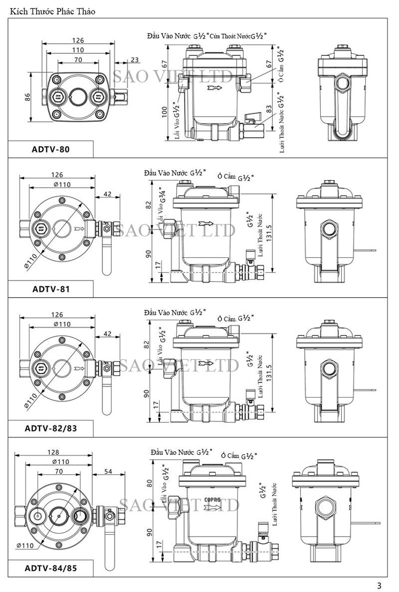 Bảng Thông Số Và Bản Vẽ Kỹ Thuật Van Xả Nước Tự Động Máy Nén Khí ADTV-8