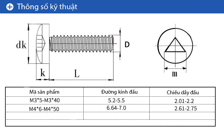 BẢNG THÔNG SỐ KỸ THUẬT VÍT INOX ĐẦU TAY VẶN