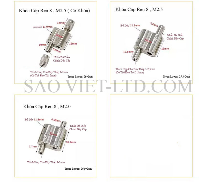 Bảng Thông Số Kỹ Thuật Vít Khóa Dây Cáp Hai Đầu Có Thể Điều Chỉnh