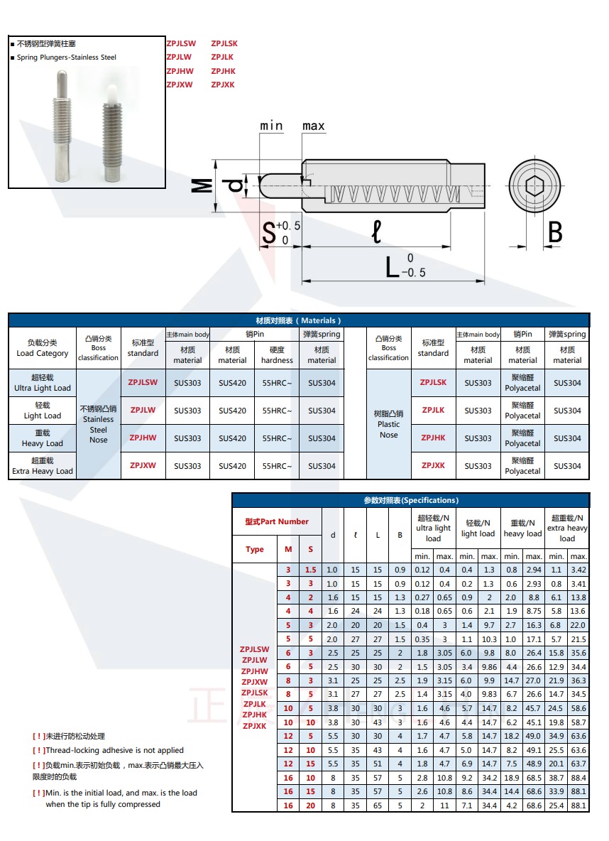 Bảng Thông Số Kỹ Thuật Vít Trí Lò Xo Pít Tông PJLSW/PJLW/PJHW10 12 16-5 10 15 20 30