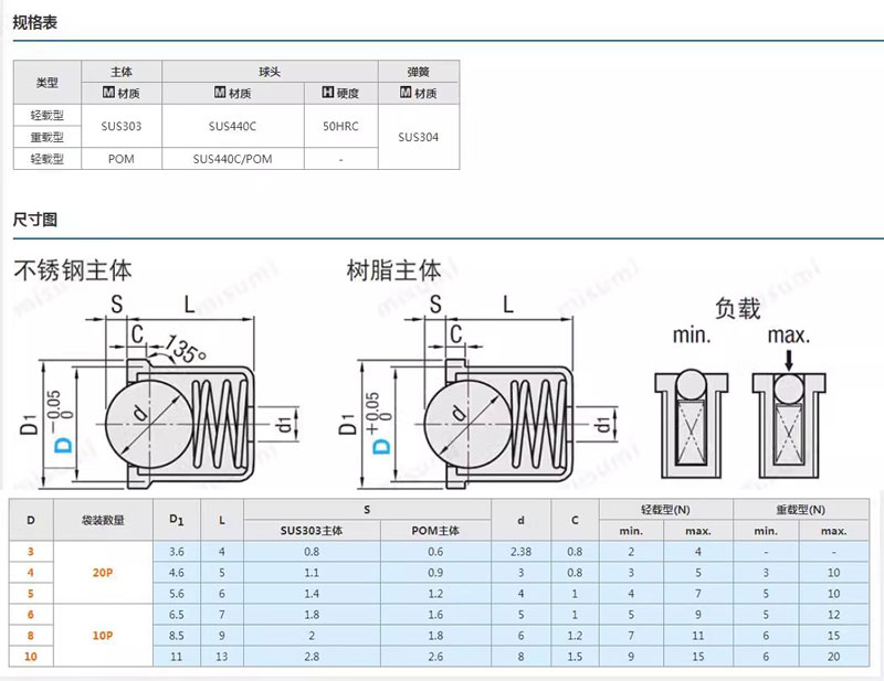 Bảng Thông Số Kỹ Thuật Vít Trí Pít Tông Đầu Bi Nhún C-PFSSN
