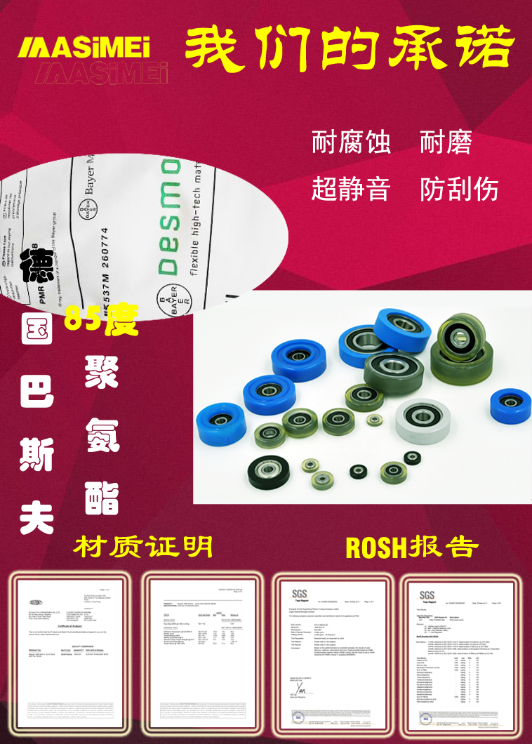 + Vòng bi bọc Nhựa PU có tính đàn hồi có thể thay thế vòng bi kim loại trong các ố trượt, tấm chống ăn mòn, đĩa xích, con lăn và vô số các chi tiết khác, vói các lợi ích như giảm trong lượng, giảm tiếng ồn và nâng độ bền mài mòn.
