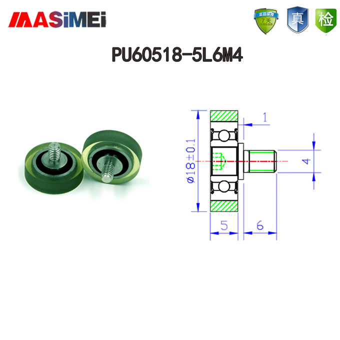 Các chất liệu Vòng bi bọc nhựa xanh PU 60518-5C1L6M4: