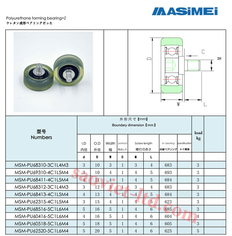Bảng Thông Số Vòng Bi Bọc Nhựa PU CỌC VÍT M3-M4