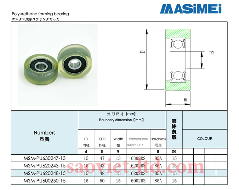 Bảng Thông Số Vòng Bi Bọc Nhựa PU Phi Trục 15