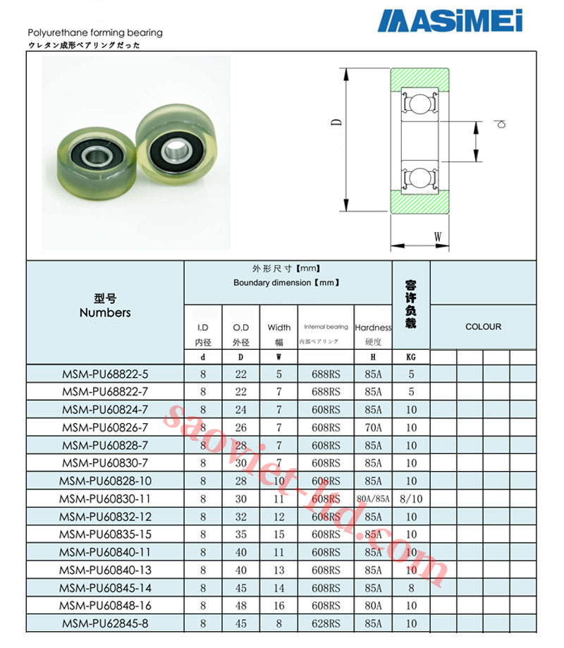 Bảng Thông Số Vòng Bi Bọc Nhựa PU Phi Trục 8