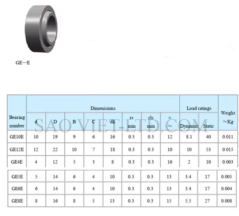 Mô tả sản phẩm: Vòng bi cầu inox 304 SGE8E, GE10E, SGE12E, GE15E, GE17, GE20, GE25, GE30, GE40, GE50, GE60, GE