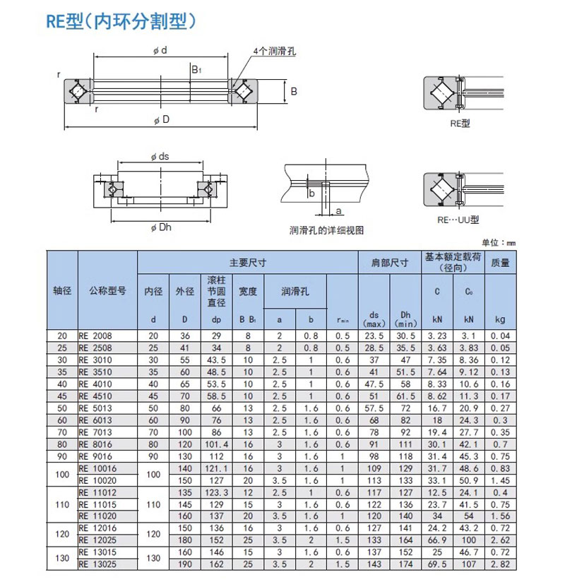 Bảng Thông Số Kỹ Thuật Vòng Bi Dẫn Hướng Con Lăn Chéo RE