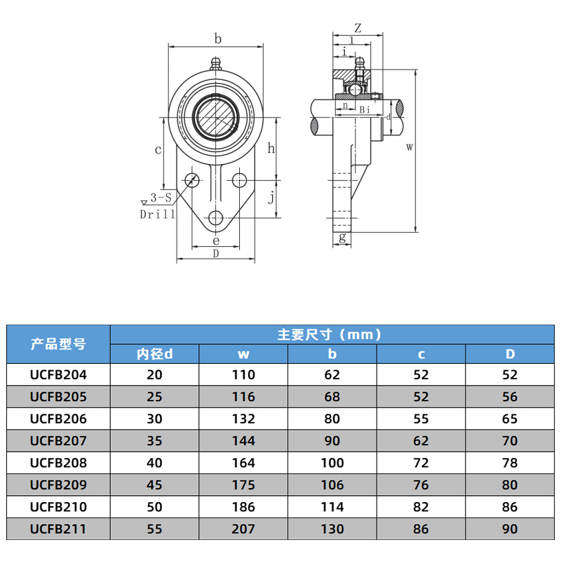 BẢNG THÔNG SỐ UCFB203, UCFB204, UCFB205 UCFB206, UCFB207, UCFB208, UCFB209