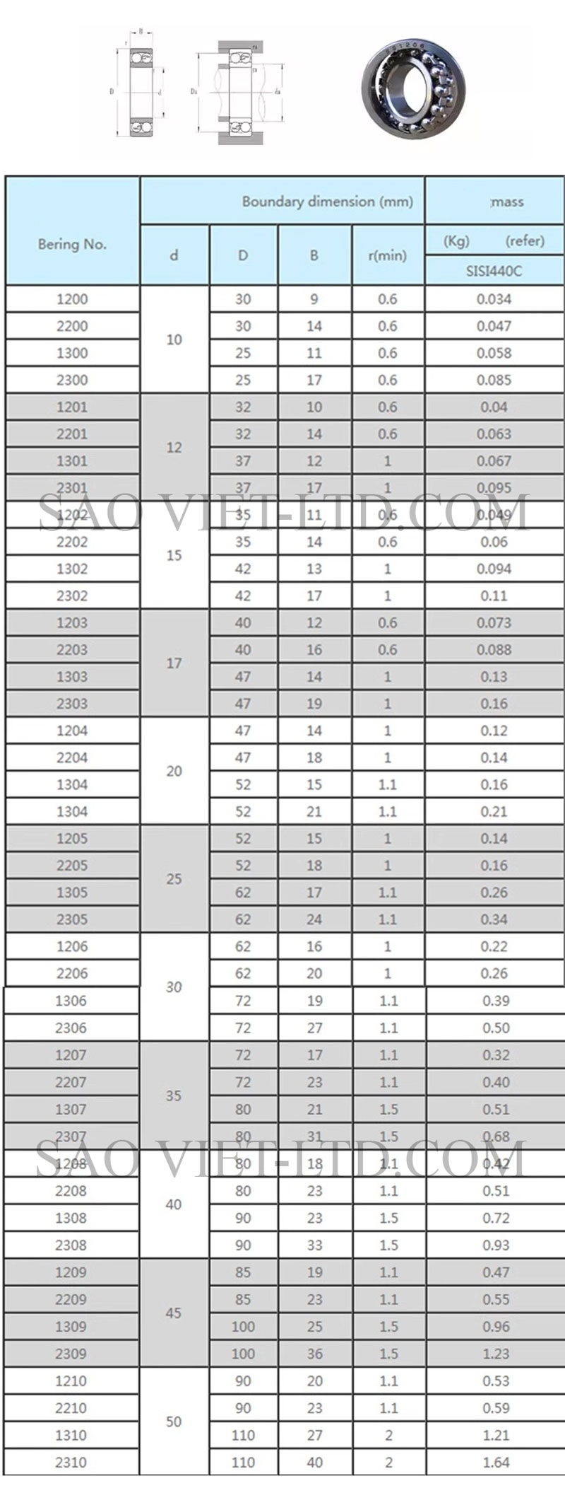 Vòng bi inox các dòng S1208, S1209, S1210, S1211, S1212, S1213, S1214, và S1215 là loại vòng bi tự lựa (Self-aligning Ball Bearing) được chế tạo từ thép không gỉ (inox). Dưới đây là mô tả chi tiết: