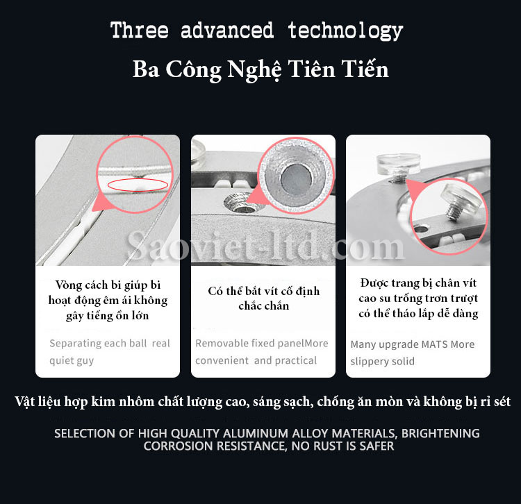 Dễ lắp đặt và sử dụng, Có thể dán keo và bắt vít cố định vòng xoay, Dễ lau chùi và vệ sinh., Nhẹ nhàng, dễ di chuyển.