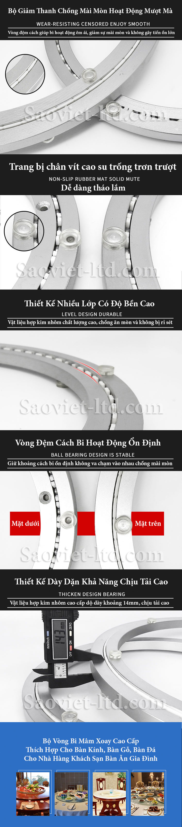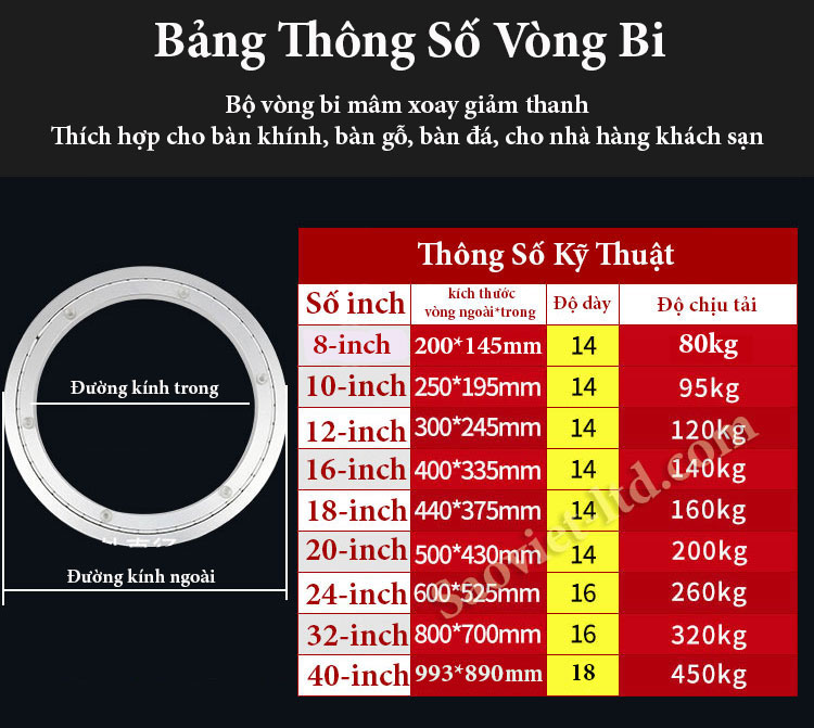 Vòng bi mâm xoay bàn ăn cao cấp chịu lực cao Sử dụng phù hợp cho bàn tròn theo các kích thước khác nhau tùy theo nhu cầu sử dụng