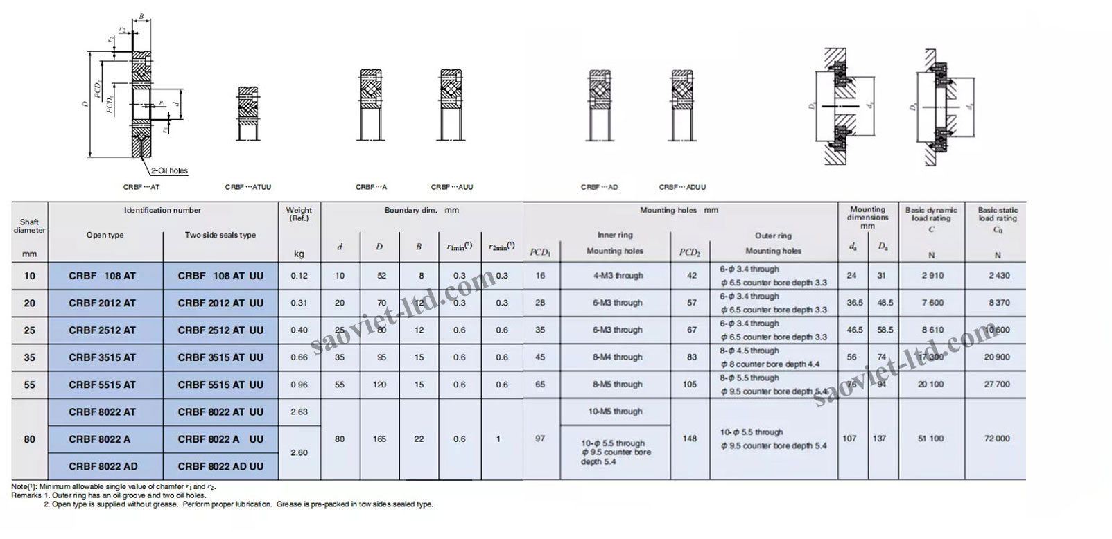 Kích thước của vòng trong và vòng ngoài của ổ trục chéo được giảm thiểu, đặc biệt là cấu trúc siêu mỏng có kích thước nhỏ gần giới hạn và có độ cứng cao. , Bàn xoay của trung tâm gia công, bộ phận quay của máy thao tác, bàn xoay chính xác, dụng cụ, dụng cụ đo, thiết bị sản xuất IC, v.v ... được sử dụng rộng rãi.