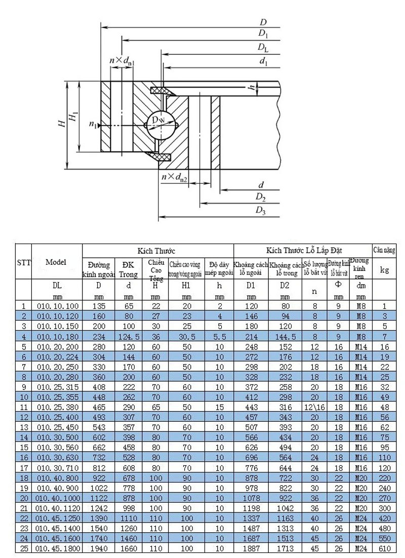 - Loại bạc đạn mâm xoay 1 dãy có khả năng chịu tải thấp nhưng bù lại tốc độ quay lại khá lớn. Ngược lại, bạc đạn 2 dãy trở lên có khả năng chịu tải lớn hơn.
