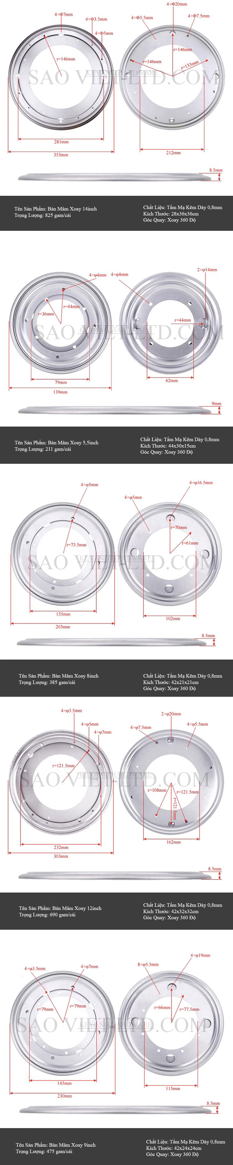 Bảng Thông Số Kỹ Thuật Vòng Bi Mâm Xoay Nội Thất Giá Trưng Bầy Sản Phẩm Đế Tròn