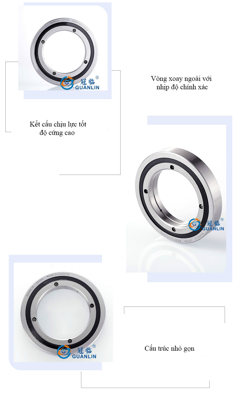 - Vòng bi mâm xoay RA là loại nhỏ gọn giúp giảm độ dày của vòng RB bên trong và vòng ngoài đến giới hạn. Thích hợp cho các bộ phận yêu cầu trọng lượng nhẹ và thiết kế nhỏ gọn, chẳng hạn như các bộ phận quay robot và thao tác.