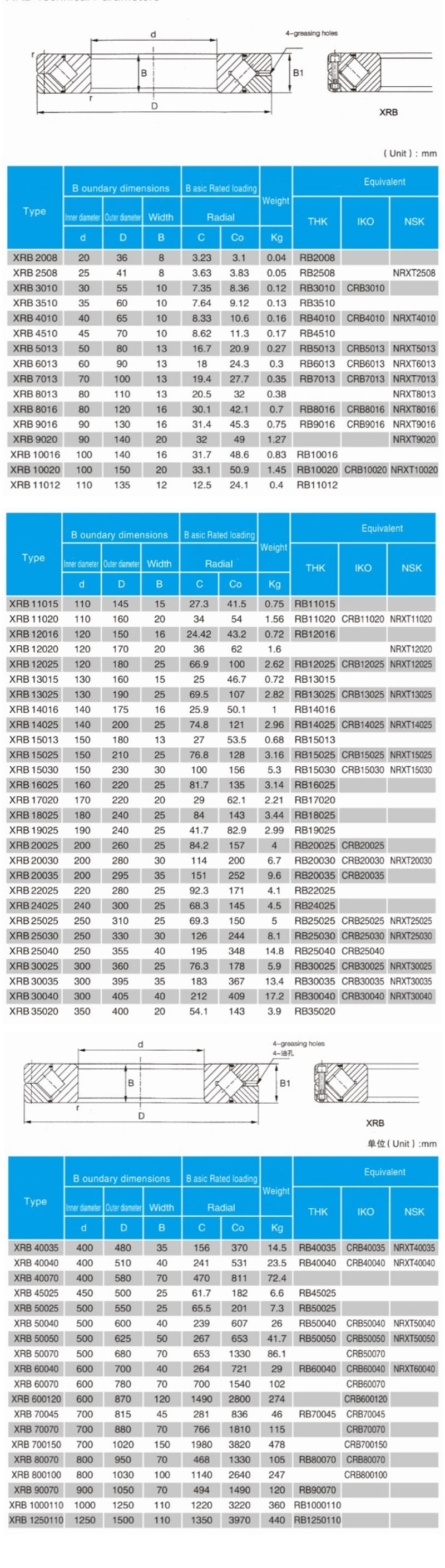 Mô hình sê-ri RE là loại mới được sản xuất theo khái niệm thiết kế của loại XRB và kích thước chính giống như loại XRB. Cấu trúc của nó là vòng trong là loại tách rời, và vòng ngoài là thiết kế một mảnh, phù hợp với các bộ phận đòi hỏi độ chính xác xoay cao của vòng ngoài.